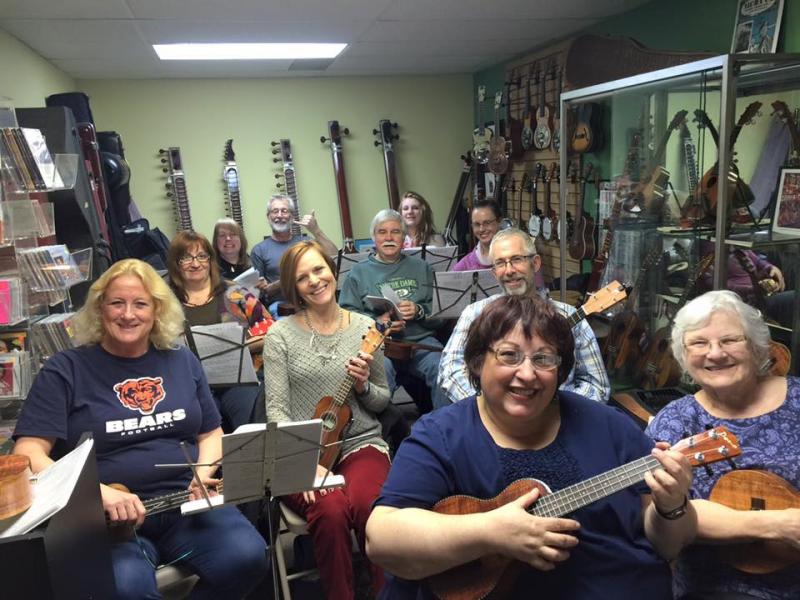 We sponsor 2 popular ukulele groups in the Chicagoland area who meet once-a-month. Songbooks/handouts provided. Each group is run differently. See below.