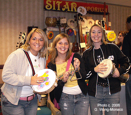 These 'girlfirends' were having a blast at the Fest...and even more fun when they came to our booth! Rachel - Tambourine Erica - Triangle Jessica - Doumbek Good rhythm girls! |