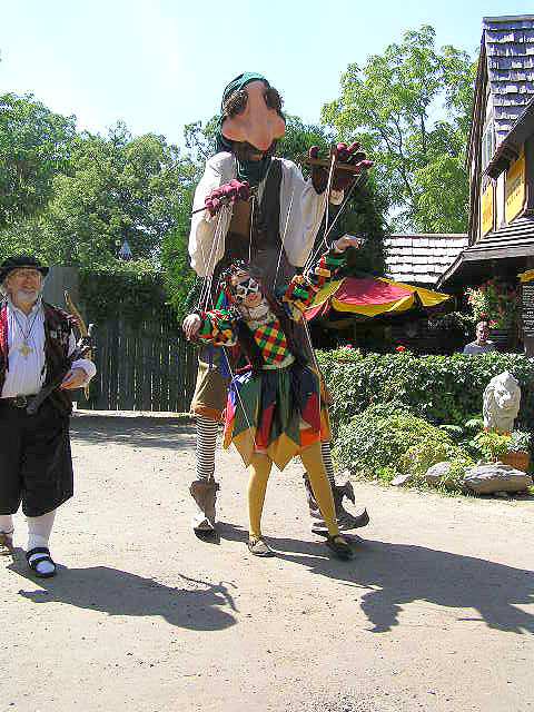 The Puppeteer is a sight to see! Bigger than life, he pulls the string of his 'little' puppet and makes her walk, turn side-to-side, wave hello, almost anything, but talk. |