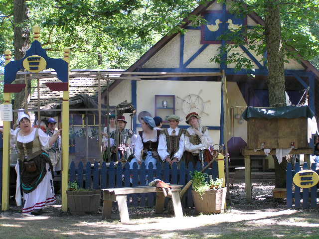 Twas a pleasure to have met and worked with the good people of the Dirty Duck Inn one fine day in 2003 and to returned this summer to visit them. A warm & friendly, hard-working 'family' who prepare food for the cast of Bristol's Renassaince Fair every summer. Cast iron kettles of boiling soups, breads, vegetives, fruits and drinks all prepared for the cast of the Renassaine Faire. Though we did not partake in the 'chores' of the Inn, we visited them this year and look forward to seeing them next year. |