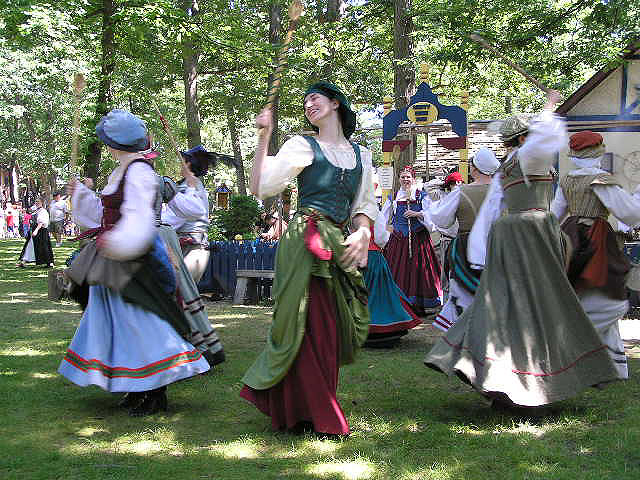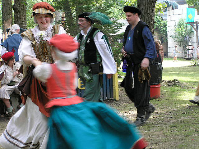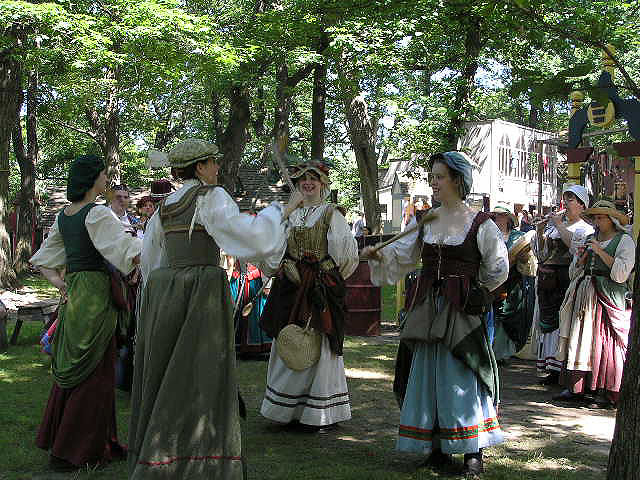 The Dirty Duck Inn's famous "Spoon Dance". Looks like fun! Musicians of the Dirty Duck Inn play their recorders, whilst the maidens dost dance.. with their spoons! |