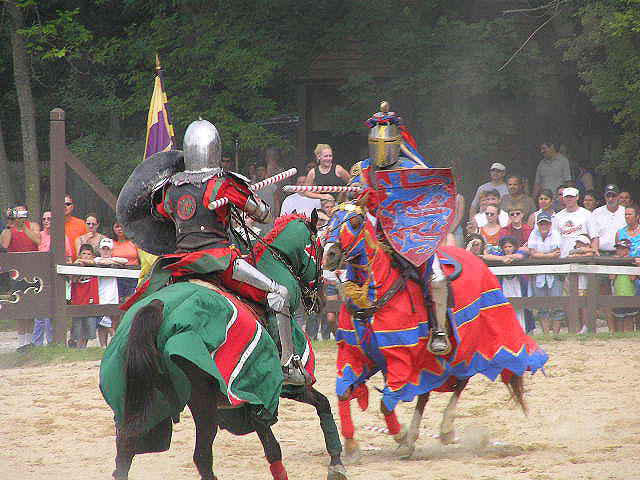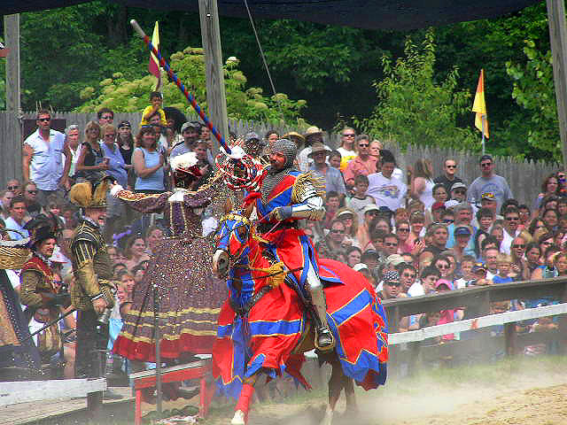 Who shall win the Queen's favor? Aye, that be Queen Elizabeth herself holding a ring for the knight to capture. |