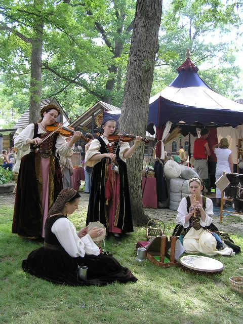 Fabulous music all day long. Minstrels wandered about Bristol playing their recorders, violins, flutes, frame drums, lutes and guitars. There was even a harpist, hurdy-gurdy player, hammered dulcimer, doumbek players... so many. 'Tis a delightful sound to the ears. And, dancing along with the sweet sounds is part of the whole experience! |