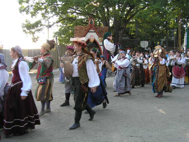 Day's end Procession. The musicians play as they march through the fair, towards the front gates. |