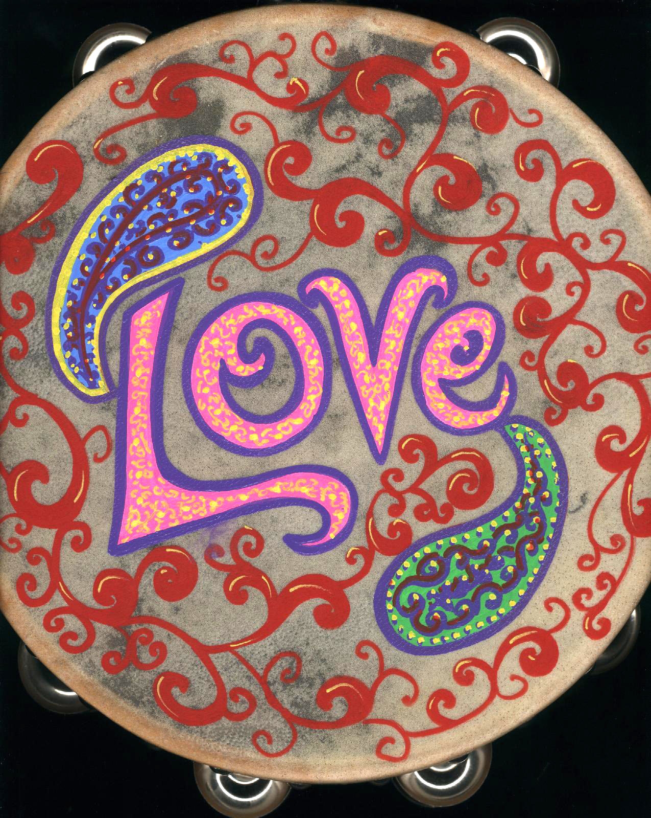 Hand-painted "Love" Paisleys & Fancy Red Swirls