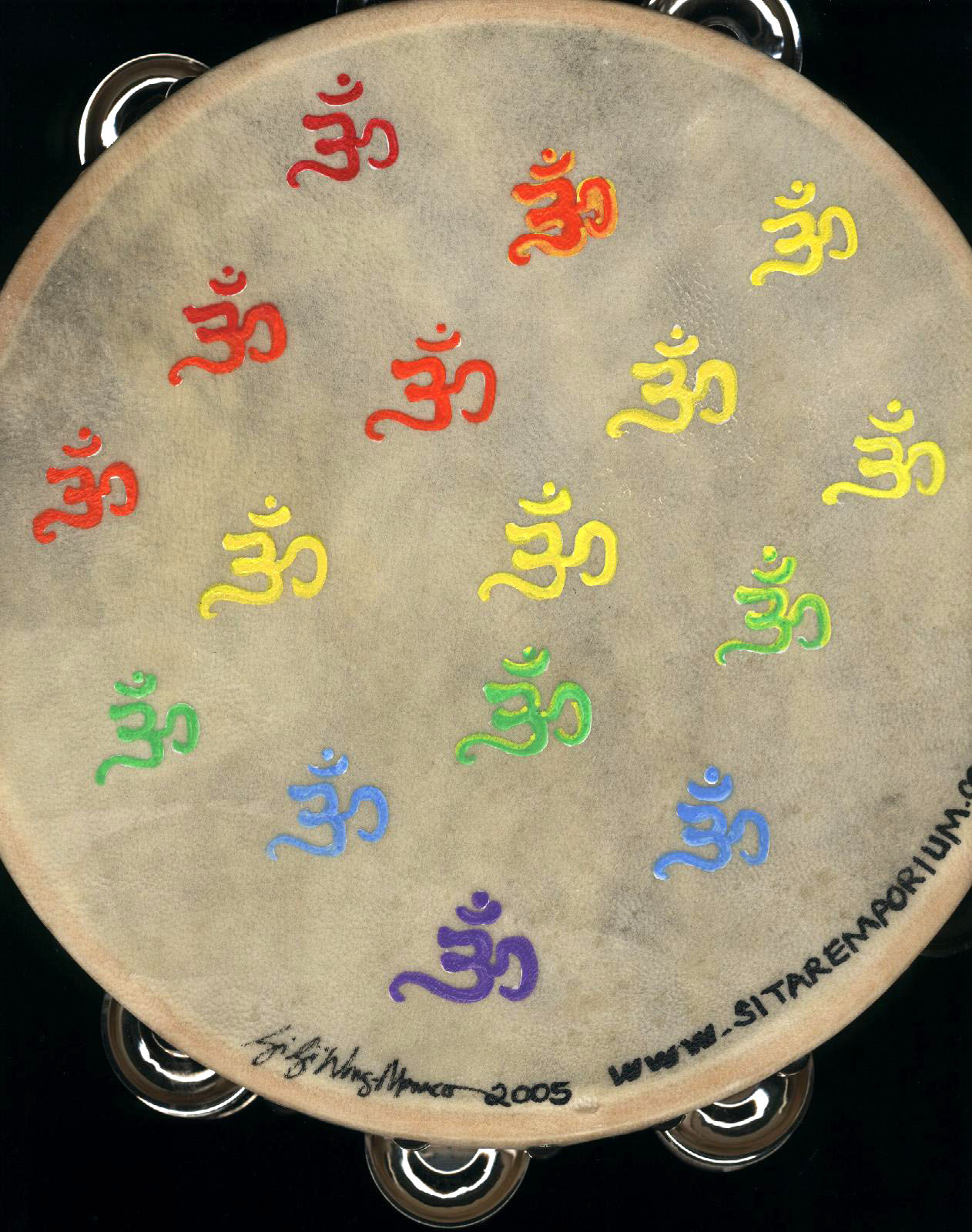 Hand-painted "Om" repeating, multi-color 10-inch Tambourine