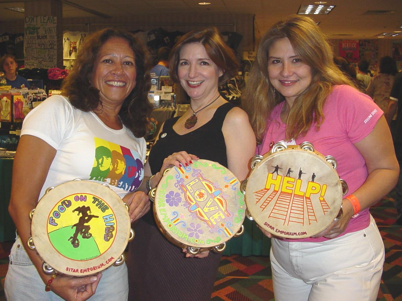 The Fest For Beatles Fans - Chicago 2004 Best friends Yvonne, Pam and Charmaine with one-of-a-kind Beatles songs inspired tambourines. |