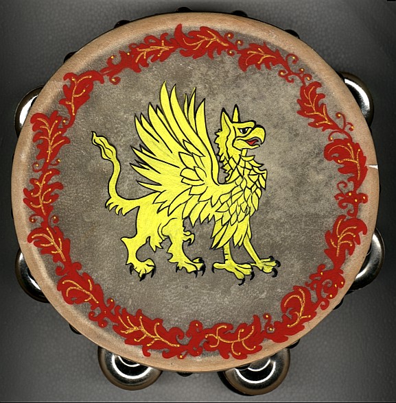"Griffin with Red Border" c. 2005. $45,not including shipping & handling. Please inquire. Take it to the next Fair or Gathering! Play! Dance! Oh what Merriment! |