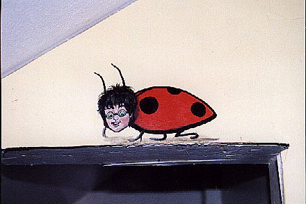 I did this mural project in October of 2000. Jessica's bedroom is also surrounded by butterflies and more ladybugs. I started reading the HP books the following month, just in time to get me excited about the movie "Harry Potter & The Sorcercer's Stone". I was hooked. Little did I know about "Rita Skeeter" and her 'animogous' form in book 4, "Harry Potter & The Goblet of Fire" The family first thought it was my husband Clar... the head part that is! |
