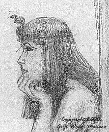 "Cleopatra Contemplating the Future" I did a series of Cleopatra drawings, Cleopatra as ruler, worshiper, mother. Those drawings may be posted in the future. |